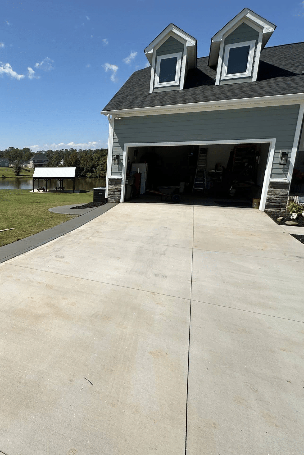 When it comes to the appearance of your driveway, you have options. Many homeowners in Greenville, SC choose a traditional broom finish because it provides a clean, classic look and good traction when it’s wet. If you’re looking for extra curb appeal, we can talk about decorative touches like stamped borders, colored concrete, or custom edges that give your driveway a more upscale feel while still keeping the strength and durability of standard concrete.